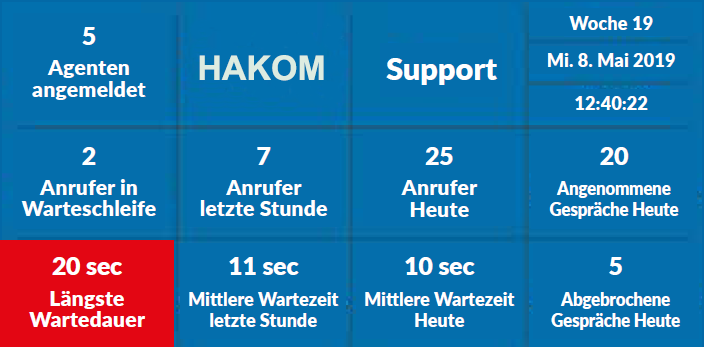 Agenten angemeldet sind sowie die durchschnittliche Wartezeit